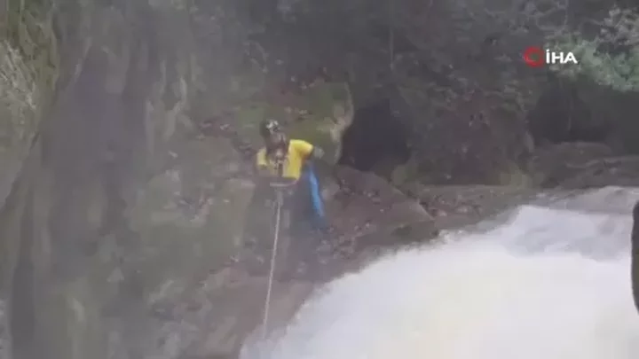 Bursa'nın Orhangazi ilçesinde bulunan Sölöz Kanyonu'nda doğa yürüyüşüne çıkan dağcı ekibi, parkurda zor anlar yaşadı.