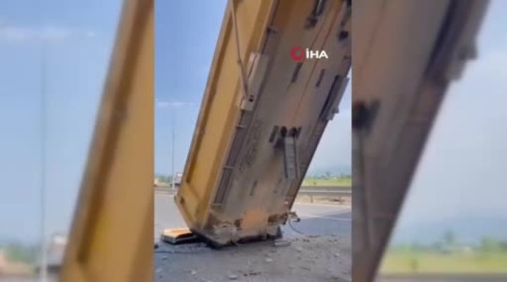 Bursa'nın İnegöl ilçesinde meydana gelen kazada damperi açık kalan kamyon, üst geçide çarptı. Çarpmanın etkisiyle kamyondan ayrılan damper üst geçitte sıkışıp kalırken, kamyon ise şarampole uçtu; sürücüsü yaralandı.