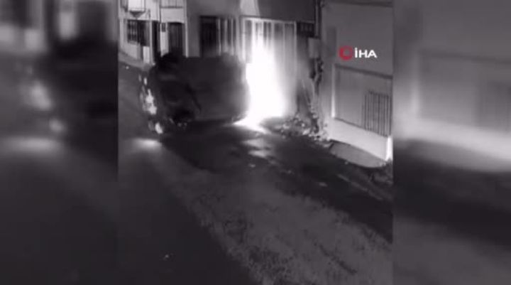 Bursa'da sürücüsünün kontrolünden çıkan otomobil sokak arasındaki bir binanın doğalgaz borusuna çarptı. Şans eseri herhangi bir patlama meydana gelmezken, araç ise yan yattı. O anlar ise güvenlik kamerasına anbean yansıdı.