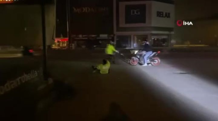 Bursa'nın İnegöl ilçesinde uygulama yapan trafik ekiplerinin dur ihtarına uymayarak polisin düşerek yaralanmasına sebep olan 2 motosikletli yakalandı. İnegöl Emniyet Müdürlüğü ekipleri plakalı gizli olan motosikletlerin sürücülerini, dedektif gibi iz sürerek yakaladılar. 16 BKF plakalı motosikletin sürücüsü ve şüphelisi B.Ö.'nün sosyal medya hesabından videolu şekilde "2 polisi peşinden koşturup birini sürükleyip yere düşürdükten sonra videoları silme şekli" ifadelerini paylaşması tepki çekti. 2 şahsa toplam 57 bin 830 TL cezai işlem uygulandı.