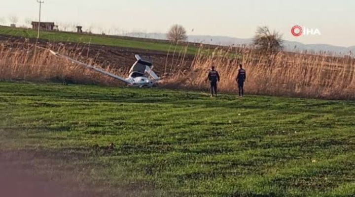 Bursa'nın Yenişehir ilçesinde bir eğitim uçağı tarlaya mecburi iniş yaptı.