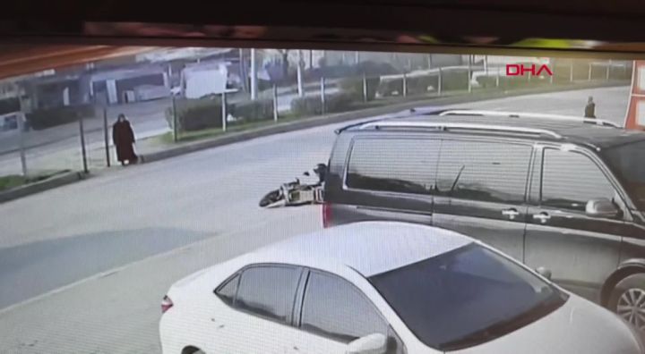 Bursa'da otomobille çarpışan elektrikli bisikletin sürücüsü yaralandı. Kaza, bir iş yerinin güvenlik kamerasına yansıdı.