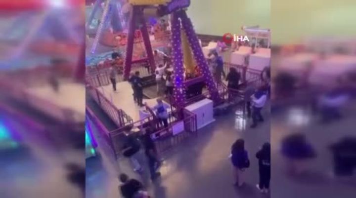 Bursa'da Korupark Alışveriş Merkez'inin oyun parkında çocukların bindiği oyuncak devrildi. Panik anları kamerayla kaydedildi, bazı çocuklar hafif yaralandı.