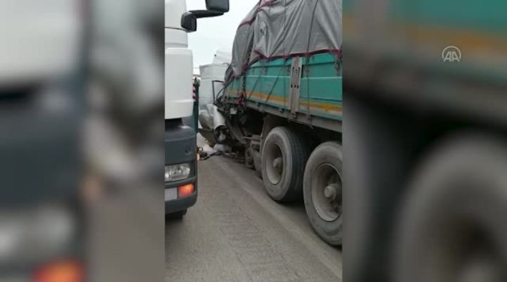 Bursa'nın Karacabey ilçesinde benzinlikten yola çıkan tıra arkadan çarpan kamyonette bulunan 2 kişi hayatını kaybetti.