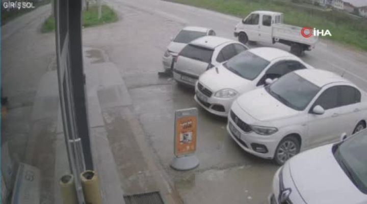 Bursa'nın İnegöl ilçesinde kontrolden çıkan otomobil park halindeki 2 araca çarptı. 5 kişinin yaralandığı kaza anı, güvenlik kamerasına yansıdı.