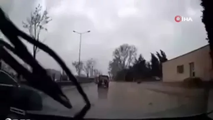 Bursa'da saatteki hızı 75 kilometreyi bulan fırtına ağaçları devirdi çatıları uçurdu. Mudanya yolunda bir ağacın fırtına sebebiyle devrilme anı araç kamerasına yansıdı.