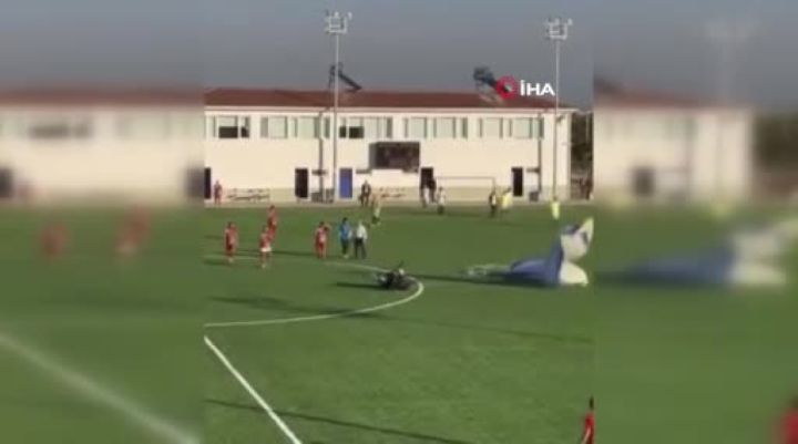 Bursa'nın İnegöl ilçesinde 2 yıl önce çalıştığı fabrikanın bahçesine inen paşütçü Adem Keskin, bu kez de maçın oynandığı sahaya iniş yaptı. Paraşüt sporcusunu gören futbolcu ve taraftarlar büyük şok yaşadı.
