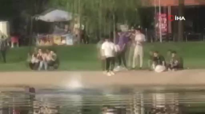 Bursa'da gençler Hüdavendigar Parkı'nda yüzdü. O anlar çevredeki vatandaşların amatör kamerasına yansıdı.