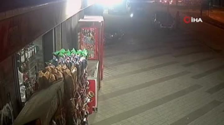 Bursa'nın İnegöl ilçesinde scoterlı gençlerin market önündeki raftan cips çalma anı kameralarla kaydedildi.