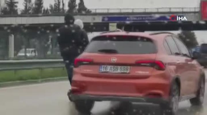 Bursa'da elektrikli socooter ile trafiğe çıkan dört kafadarın tehlikeli yolculuğu başka bir sürücünün cep telefon kameralarıyla kaydedildi.