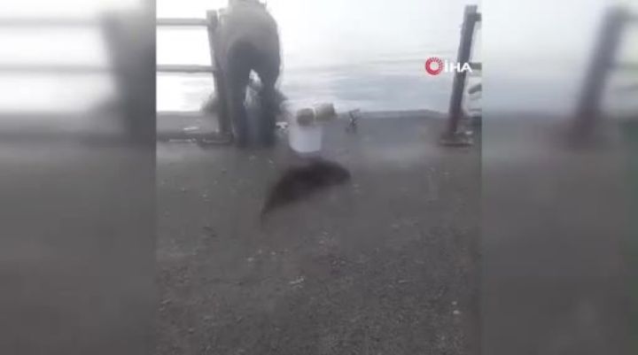 Bursa'da Kumla İskelesi'nde karşılarında su samuru gören vatandaşlar büyük şaşkınlık yaşadı.