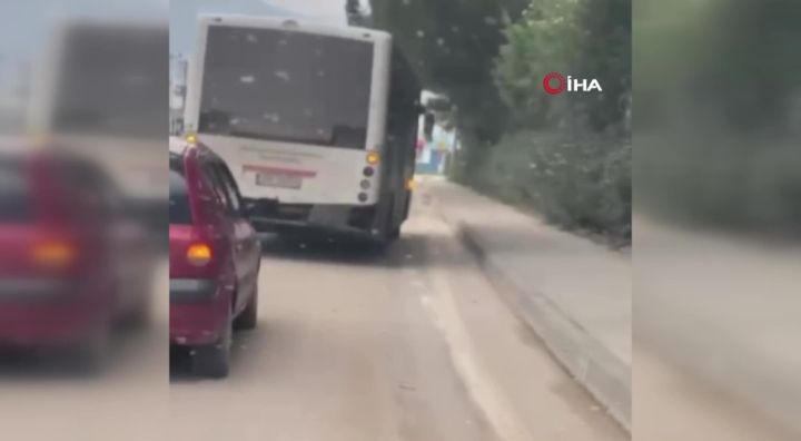 Olay, merkez Osmangazi ilçesi Adalet Mahallesi Fuat Kuşçuoğlu Caddesi üzerinde meydana geldi. Edinilen bilgiye göre, kaza yapan özel halk otobüsünün sürücüsü, otobüsü tamirciye sürerek götürmeyi tercih etti. Özel halk otobüsü lastiklerinin yamukluğu sebebiyle yan yan giderken o anlar trafikteki başka bir sürücünün cep telefonu kamerasıyla görüntülendi.