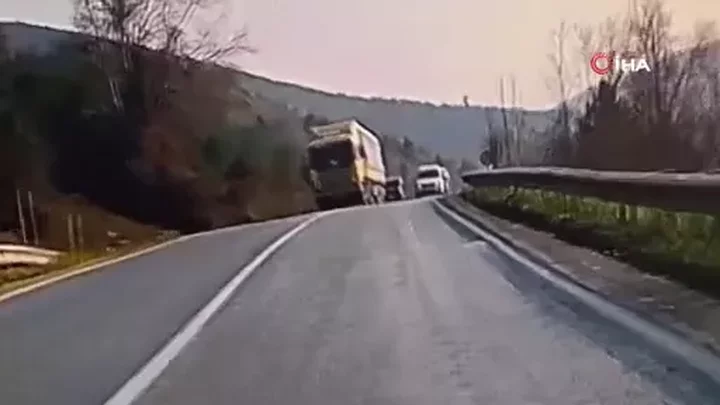 Bursa'nın İnegöl ilçesinde meydana gelen olayda sürücü, hatalı sollama yapan araç nedeniyle dehşet dolu anlar yaşadı. O anlar araç kamerasına saniye saniye yansıdı.