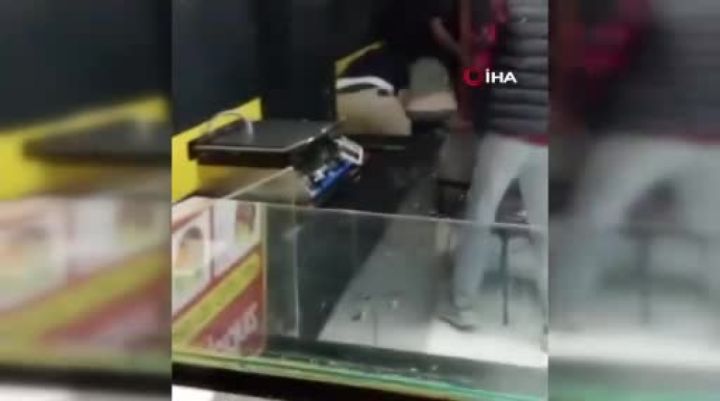Bursa'da bir çiğ köfteciye giren hırsızlık şüphelisine dükkan sahipleri meydan dayağı attı. Çevredekilerin destek verdiği darp anı cep telefonu kamerasına kaydedildi.