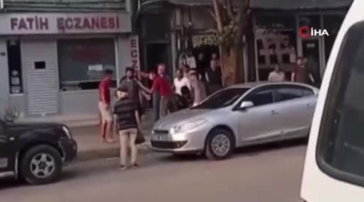 Bursa'da iki grup arasında çıkan tartışma yerini tekme ve yumruklara bıraktı. Farklı yerlerde iki ayrı grubun kavgası kameralara yansıdı.