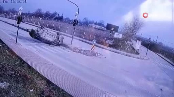 Bursa'nın İnegöl ilçesinde iki otomobilin çarpıştığı kazada 4 kişi yaralandı. Kaza anı bir iş yerinin güvenlik kamerasına anbean yansıdı.