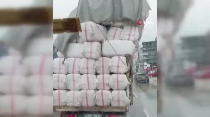 Bursa'da trafikteki tehlikeli taşımacılık başka bir sürücünün kamerasıyla kaydedildi.