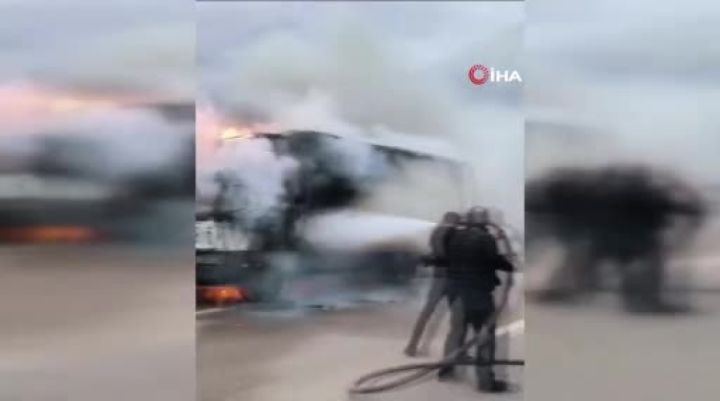 Bursa'da seyir halindeki kamyonette çıkan yangın, olay yerine itfaiye aracıyla gelen mahalle muhtarı tarafından söndürüldü.