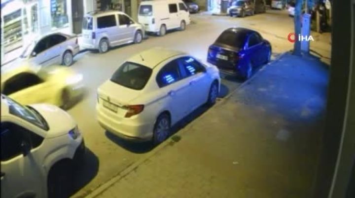 Bursa'nın İnegöl ilçesinde kimliği belirsiz bir şahıs, kapalı olan kuaförün camına 5 adet yumurta attı. O anlar iş yerinin güvenlik kamerasına saniye saniye yansıdı.