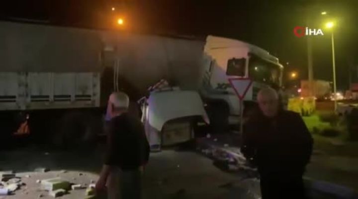 Bursa'nın Karacabey ilçesinde kavşakta çarpışan tırların sürücüleri yaralandı.