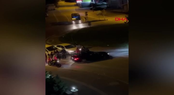Bursa'da, otomobiliyle kavşakta drift atan sürücü, kendisini uyaranlara tepki gösterdi. Çevredekiler, o anları cep telefonu kamerasıyla kayıt altına aldı.