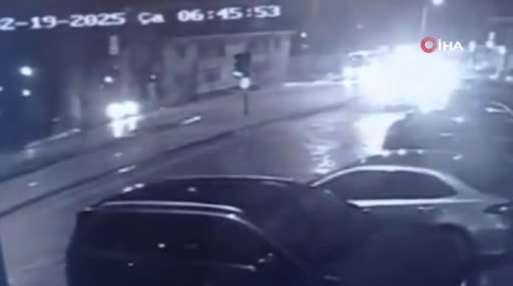 Bursa'da hafif ticari araç ile otomobil kafa kafaya çarpıştı. Çarpışmanın etkisiyle yoldan çıkan hafif ticari araç bir eczanenin bahçesine daldı. O anlar saniye saniye güvenlik kamerasına yansıdı.