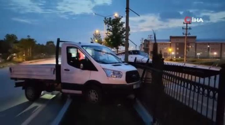 Bursa'nın İnegöl ilçesinde bariyerlere çarpan kamyonetin taşıdığı yarım milyonluk yat büyük hasar aldı.