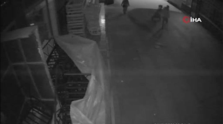 Bursa'nın İnegöl ilçesinde meydana gelen olayda iş yerinin önündeki metal bahçe koltuğunu çalan 2 şahıs güvenlik kamerasına yansıdı.
