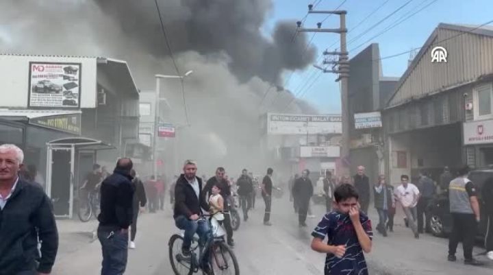 Bursa'nın Osmangazi ilçesindeki koltuk imalathanesinde çıkan yangın, ekiplerin müdahalesiyle kontrol altına alınmaya çalışılıyor.