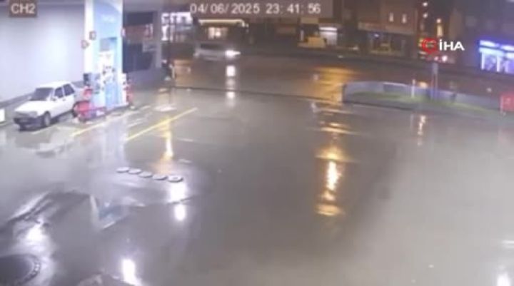Bursa'da sürücüsünün kontrolünden çıkan otomobil duvara çarparak durabildi. Kaza anı güvenlik kamerasına yansıdı.