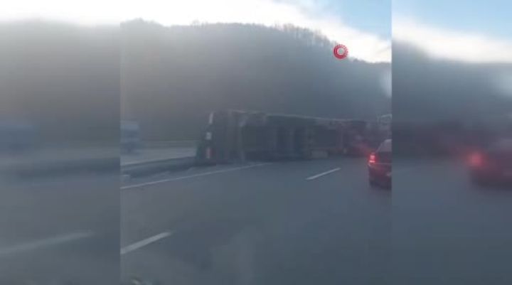 Bursa'nın İnegöl ilçesi Mezit boğazında meydana gelen kazada kontrolden çıkan tır devrildi. Kazada sürücüsünün yaralandığı tespit edildi.