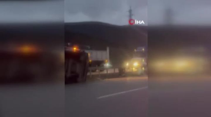 Bursa'da kontrolden çıkan tırın bariyerlere çarparak yan yattığı kazada 1 kişinin yaralandığı belirtildi.