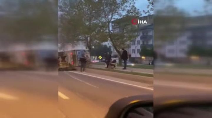 Bursa'nın İnegöl ilçesinde lastiği patlayan palet yüklü kamyonet devrildi, kazada şans eseri yaralanan olmadığı belirtildi.