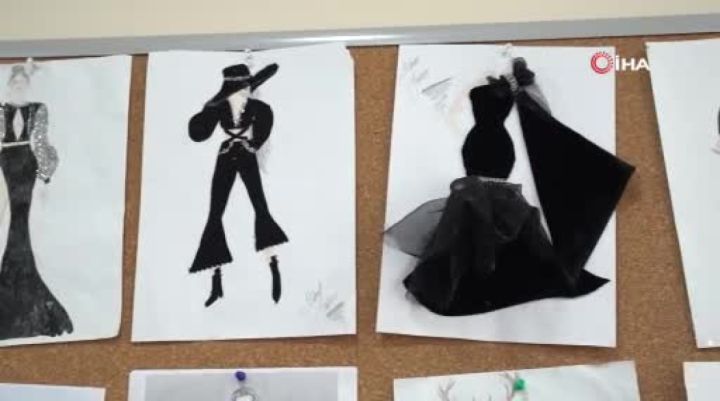 Bursa Yıldırım Belediyesi Sosyal İnovasyon Merkezi Artistik Çizim ve Drapaj kursu öğrencileri, gazete kâğıdı, plastik kablo gibi atık ürünleri ve ağaç yapraklarını kullanarak kıyafet yapıyor.