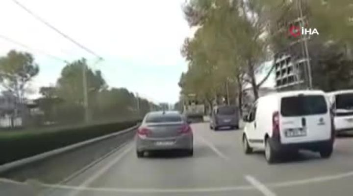 Bursa'da anayolda makas atan ticari aracın sürücüsü yürekleri ağza getirdi. Saniyelerle faciadan dönülen o anlar, başka bir aracın iç kamerasına anbean yansıdı.