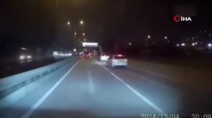 Bursa'da ana arterde hızla seyrederken makas atan otomobil, sürücüsünün idaresinden çıkarak refüje çarptı. Kaza anı saniye saniye araç içi kamerasına yansıdı.