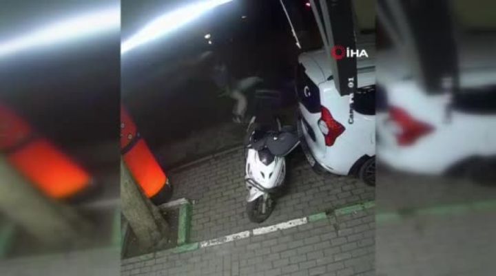 Bursa'da bir marketten alışveriş yaptıktan sonra dışarı adım atan kişiye motosiklet çarptı. İlginç kaza güvenlik kamerasına saniye saniye yansıdı.