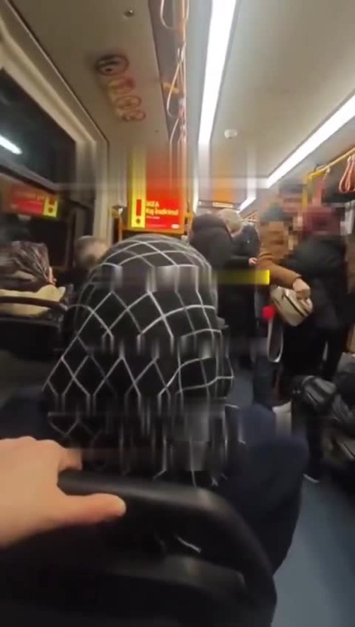 Bursa'da bir kadın metroda sarılan çifte laf atınca tansiyon yükseldi. Kadının söylemleri 'pes' dedirtti. O anlar metrodaki diğer yolcular tarafından cep telefonu ile kaydedildi.