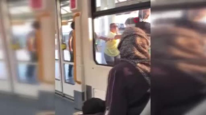 Bursa metrosunda yolcular arasında 'yer verme' kavgası cep telefon kamerasına kaydedildi.