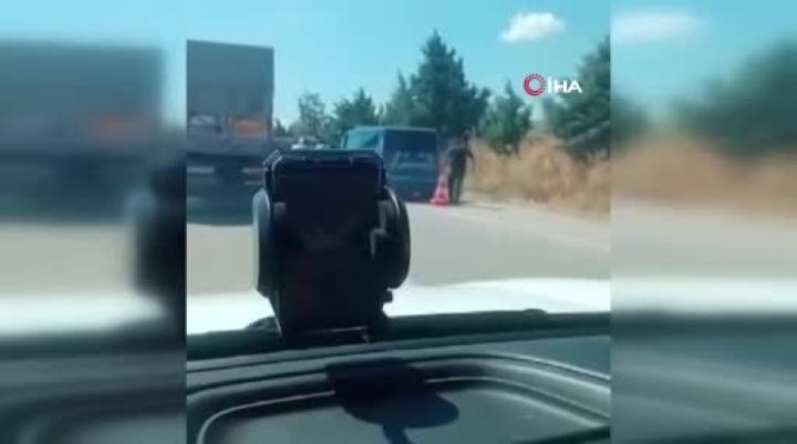 Bursa'da meydana gelen kazada, sürücüsünün idaresinden çıkan minibüs devrildi. Kazada şans eseri yaralanan olmadı.