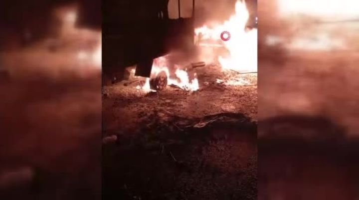 Bursa'nın İnegöl ilçesinde mobilya taşıyan kamyonet alev alev yandı.