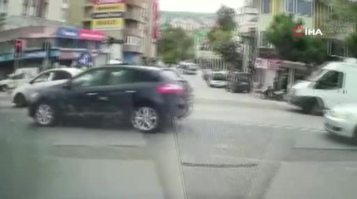 Bursa'da önünde fren yapan araca çarpan motosikletli havaya savruldu. O anlar araç içi kamerasına anbean yansıdı