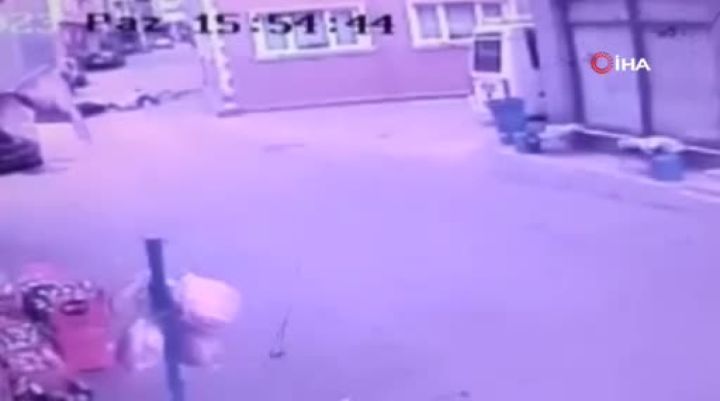 Bursa'da 28 Mayıs günü seyir halindeki motosiklet sürücüsü karşıdan gelen bisikletli sürücüyle kafa kafaya çarpıştı. İki sürücünün de yaralandığı kaza işyerine ait güvenlik kamerasıyla kaydedildi.