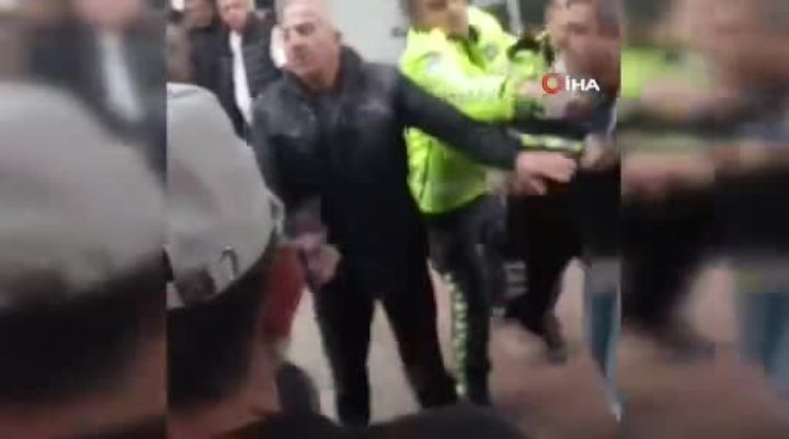 Bursa'nın Orhangazi ilçesinde motosikletlileri denetleyen polis ekipleri, plakasız gezen bir sürücüye idari ceza uygulayınca tansiyon arttı. Sürücü ile polis arasında çıkan tartışmada yumruklar konuşurken, o anlar kameraya anbean yansıdı.