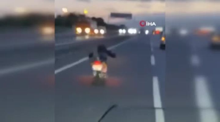 Bursa'nın İnegöl ilçesinde bir kişi, üzerine yatarak kullandığı motosikletle trafikte tehlikeli şekilde seyretti. Kara yolunda zaman zaman hızını 125 kilometreye çıkaran sürücüyü görenler, o anları cep telefonuyla kaydetti.