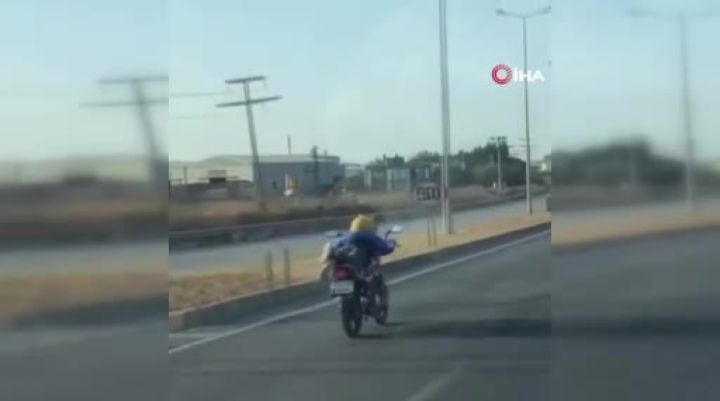 Bursa'da canını hiçe sayan motosiklet sürücüsü, motoru yatarak kullandı.