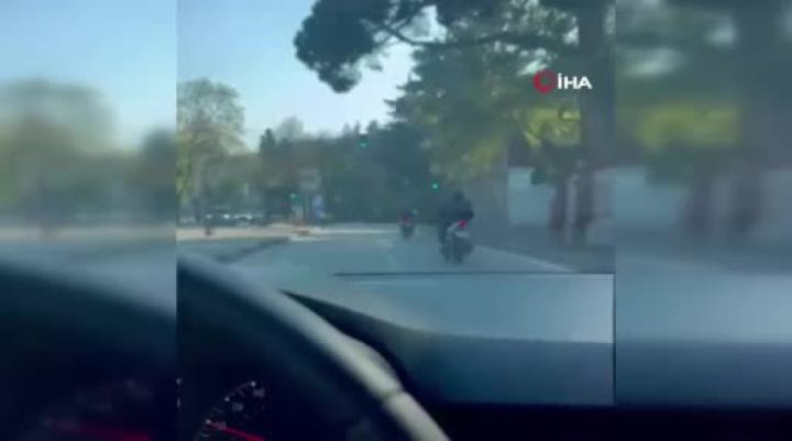 Bursa'da motosikletleriyle trafiğe çıkan arkadaşlar iki tekerlek üzerinde dans ettiler. O anlar kameraya yansırken, motosikletli gençler sivil trafik ekipleri tarafından tespit edildi. İki arkadaşa 3 bin 646 lira idari ceza kesilip, ehliyet puanlarından da düşüldü.
