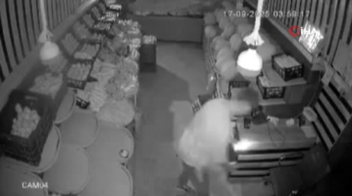 Bursa'nın İnegöl ilçesinde bir manav dükkanına giren 2 şüpheli, kasadan para ve tezgahtaki meyveleri çaldı. O anlar güvenlik kamerasına saniye saniye yansıdı.