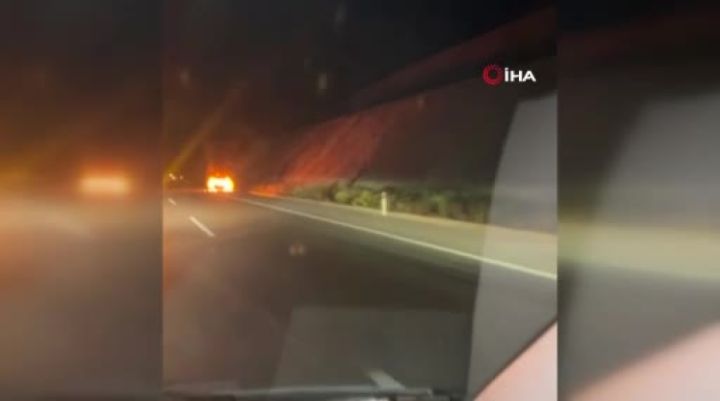 Bursa'da seyir halindeki otomobil cayır cayır yandı. Otomobilde çıkan yangın vatandaşın kamerasına yansıdı.