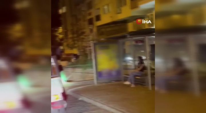 Bursa'da açık kasa kamyonetle gelen bir grup genç, otobüs durağında bekleyen kişinin üzerine yangın söndürme tüpü püskürterek hızla kaçtı. O anlar kameraya anbean yansıdı.
